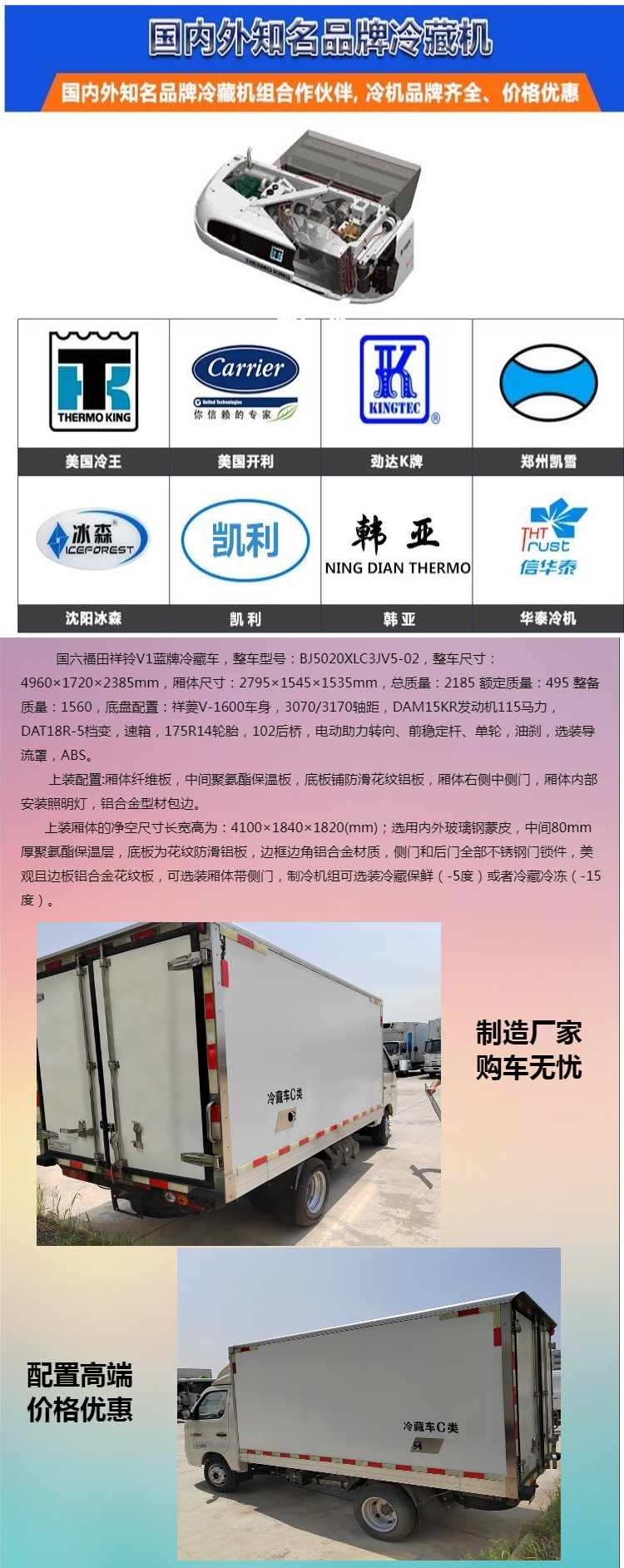4米2冷藏车 小型蓝牌冷冻冷链货车 海鲜蔬菜水果保温车 福田冷藏车