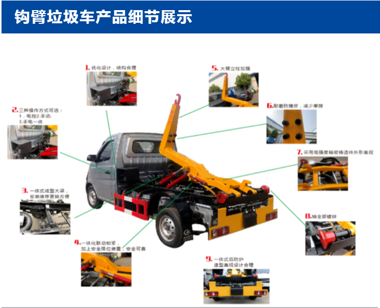 南骏勾臂垃圾车 蓝牌垃圾自卸车 建筑垃圾清运车 5方6方8方 重载板扎实耐用
