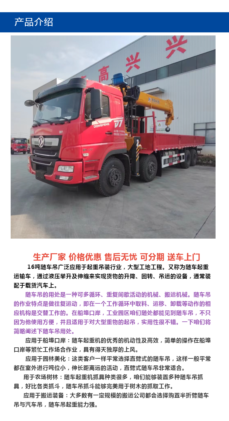 东风畅行D7前四后八16吨随车吊 四桥14吨起吊运输车 程力12吨自备吊车 |
