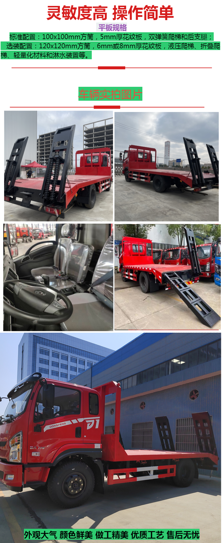 东风D1云内170马力国六单桥平板车 拉12吨以内挖机平板运输车 拖车