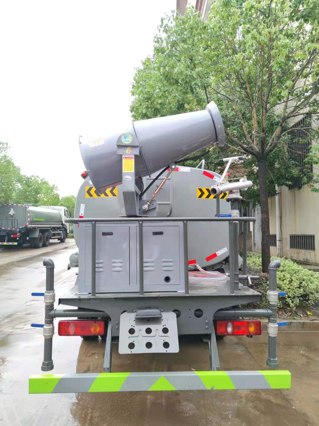 10吨洒水车报价30米雾炮:水平射程:32-35米,0-320度水平旋转,仰俯角度为-10-40度, 覆盖面积为2500平米,2吨流量/小时,0-3.5MPA工作压力,50-200米雾普范围,设备为固定式,总装机功率为9.8KW,零下30度到45度的使用环境温度,手动和控制方式,5.5KW风机,14800PA风压,1173m3风量,15KW柴油发动机,外形尺寸(长*宽*高):1米2*0.8米*1米7,15个喷头,380伏供电。