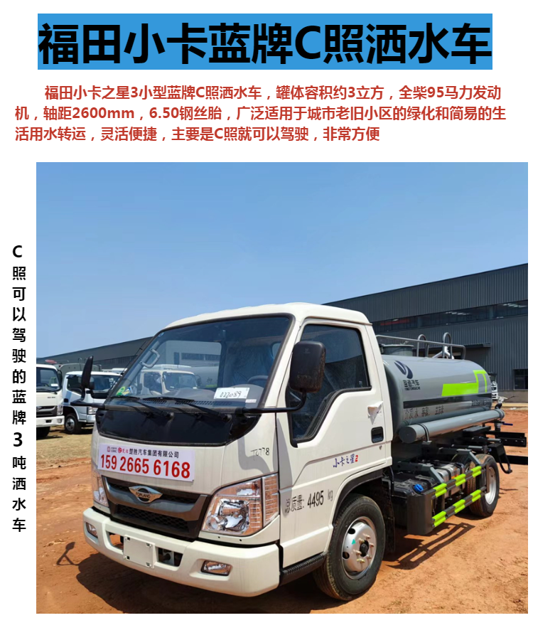 福田小卡蓝牌3吨洒水车 小型洒水车C照可驾驶 3方洒水车性能优 |