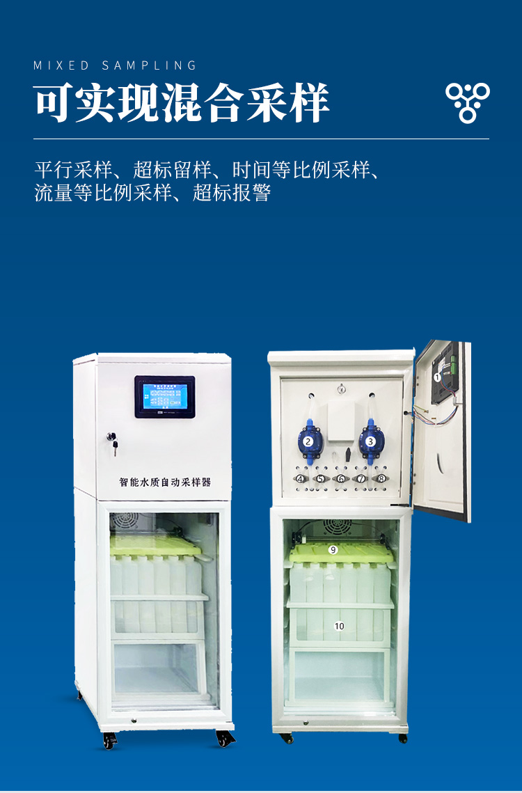 1、 可实现混合采样。平行采样、超标留样、时间等比例采样、流量等比例
