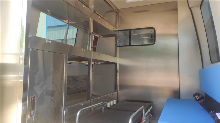 5-7人座救险车_依维柯欧胜气防车救险车,机舱前端为中间隔板,中间隔板上设有滑动窗、液晶显示器和对讲机。手动百叶窗,透视窗,调节灵活、牢靠,常年运行无需加油润滑,无噪音,密封性能效果好。救险车的上装从外部结构上看,跟普通厢货车区别不大。舱体右侧折叠椅的左侧设有器材骨架Ⅱ,器材骨架Ⅱ后侧配备灭火器。厢体有静音降噪的效果。气防车包括车体、驾驶室、舱体。在机舱前部两侧设有折叠椅,中间设有折叠桌,在折叠桌上设有通讯电台。