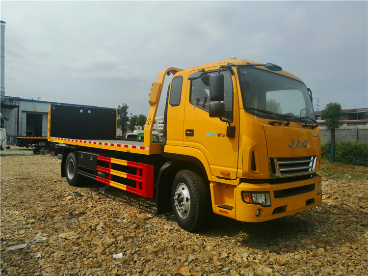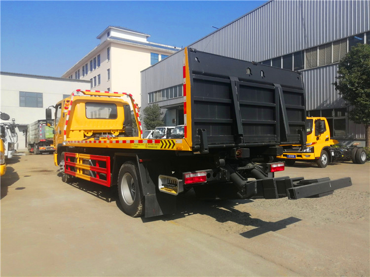 上装配置:10吨上装,10吨中置卷扬,35米钢丝绳,下沉板,板长8.3米(含尾部1米液压翻转板),宽2.55米,采用6mm厚花纹板,10吨分体式三节后托臂,双侧联动操作,进口多路阀,配辅助小车一套,L型抱胎架一对,四条捆绑带,LED工作照明灯一对,工具箱一个,辅助气管一套,拖叉及拖叉座一套,钢板吊耳拖叉一对,洗手箱一个,其余按标配。