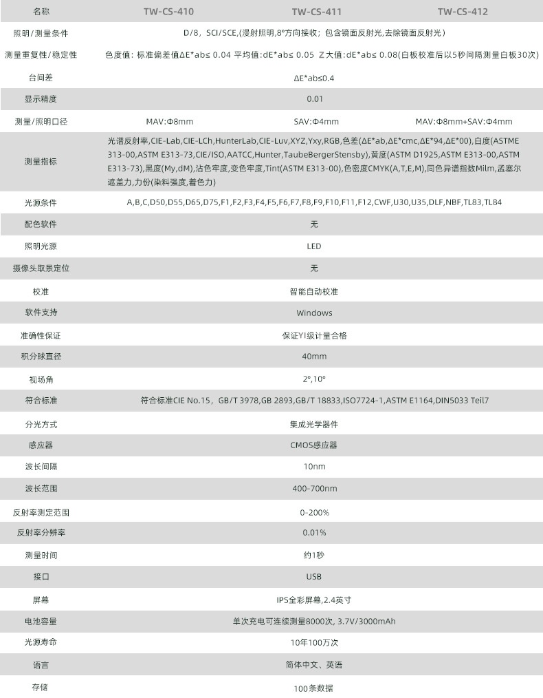 TW-CS-411手持式分光色差仪 便携式色差计 纺织布料油漆测色仪