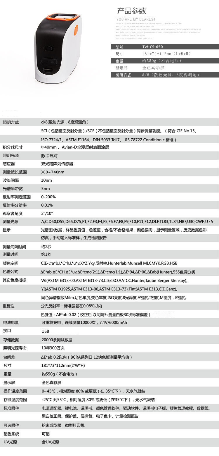 TW-CS-650氙灯版分光测色仪UV光源荧光物色彩检测仪 色差仪