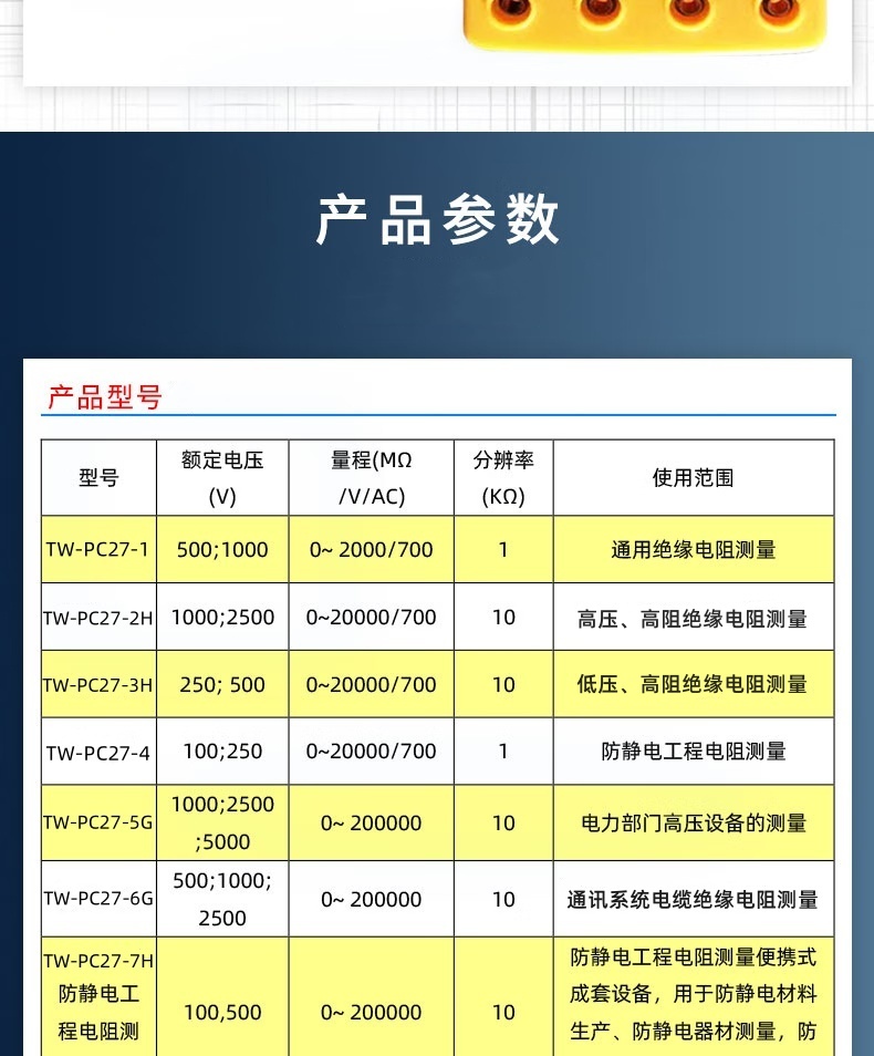 TW-PC27-1绝缘电阻表 绝缘电阻测试仪数字兆欧表 通用绝缘电阻测量