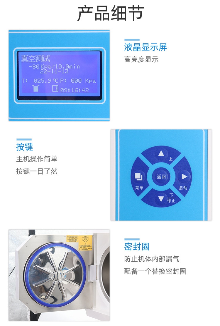 ● 自动排放冷空气,灭菌结束自动排放蒸汽