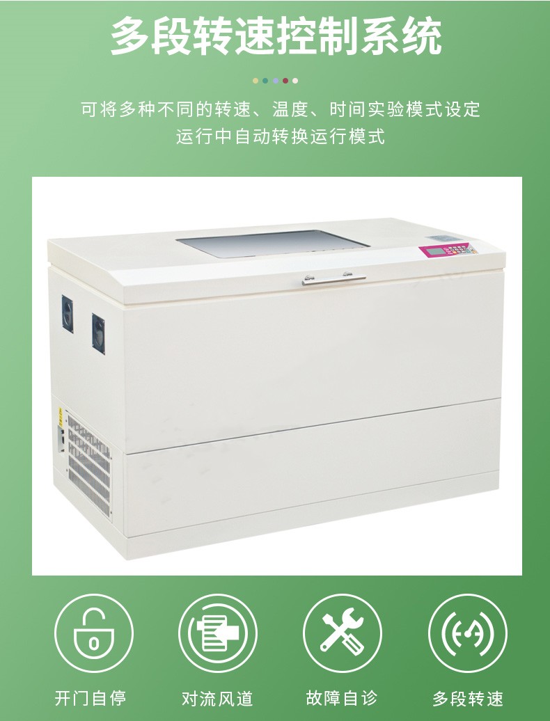 4、多段转速、温度、时间控制系统。可将多种不同的转速、温度、时间实验模式一次设定完成,运行中自动转换运行模式。