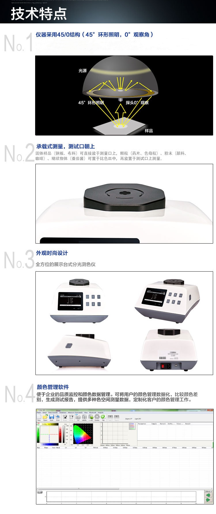 TW-CS-800CG台式45/0光泽分光测色仪 卷材涂料塑料颜色测量仪