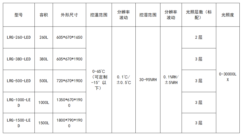 LRG-LED 系列冷光源人工气候箱技术参数:
