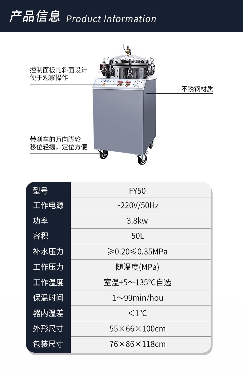 FY50定数数控反压高温蒸煮锅 50L实验室立式不锈钢消毒灭菌锅
