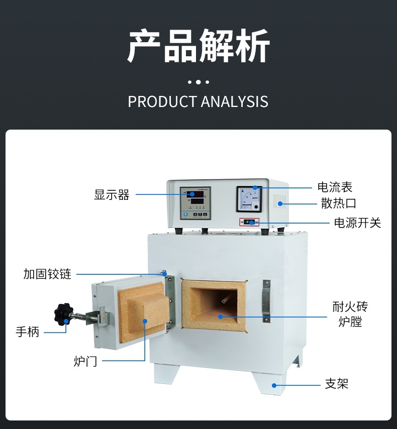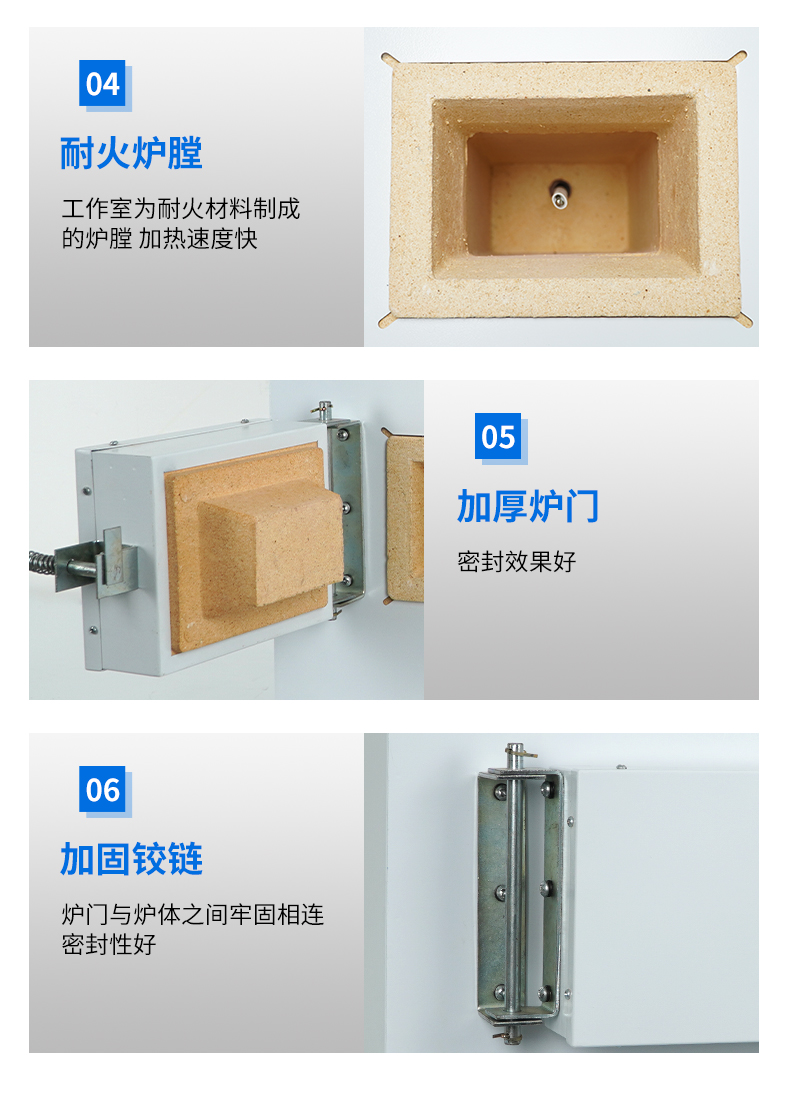 2.工作室为耐火材料制成的炉膛,轻质保温砖。