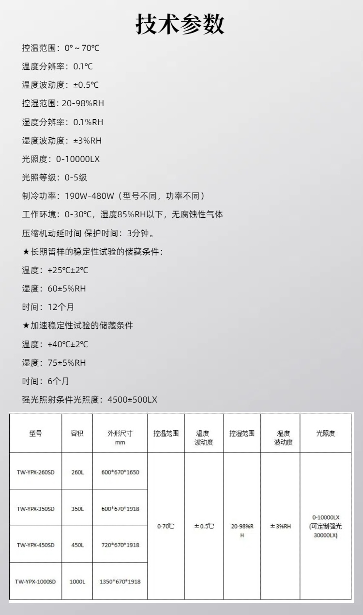 TW-YPX-450SD实验室药品稳定性试验箱 450L模拟气候湿度光照箱