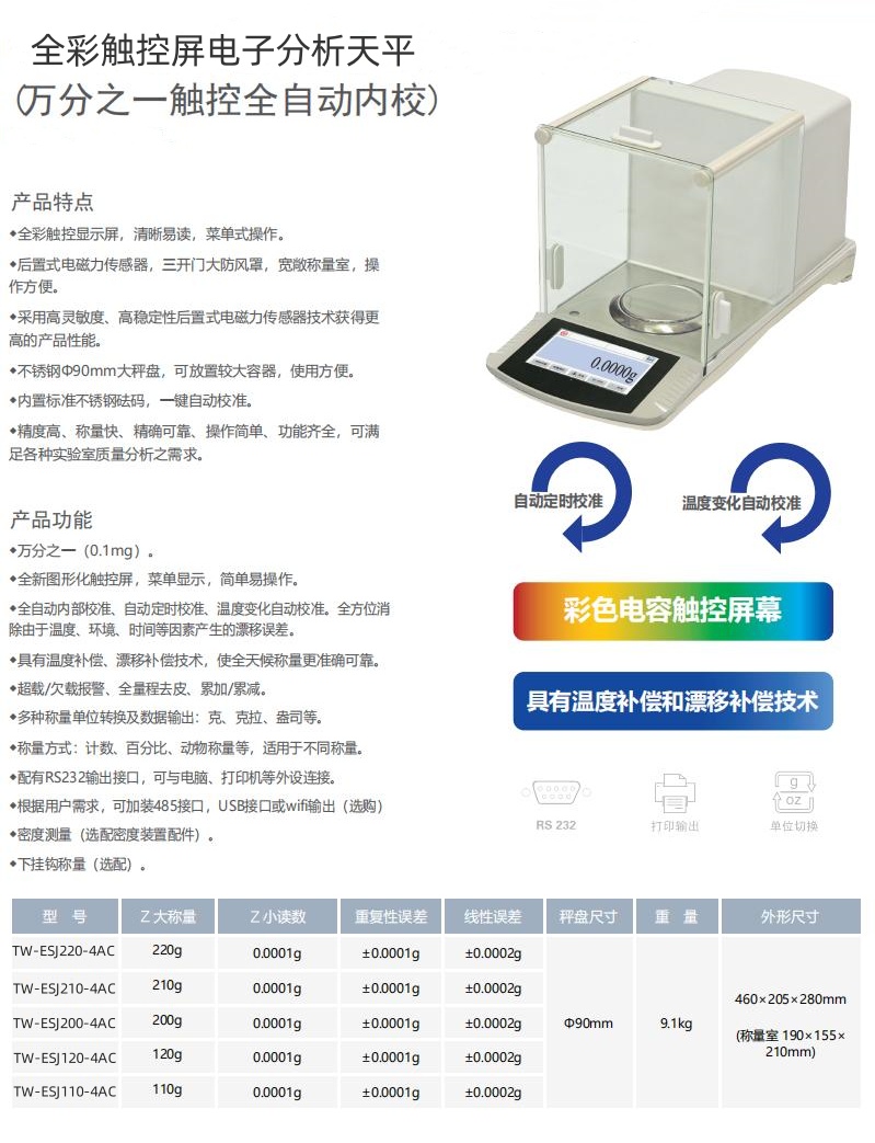 120g全自动电子分析天平TW-ESJ120-4AC 实验室万分之一内校天平