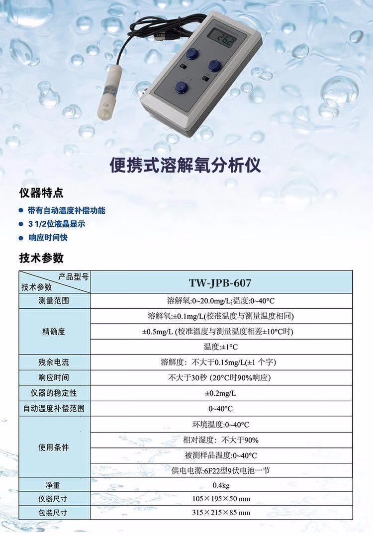 溶解氧:0~20.0mg/L;温度:0~40°C |