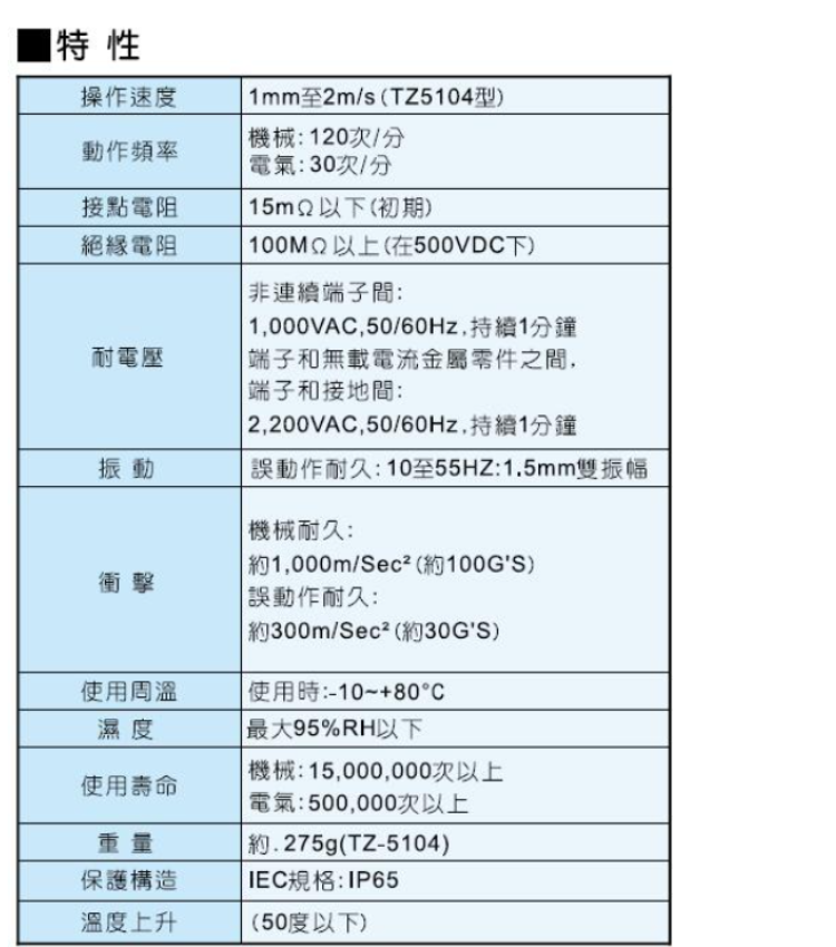TZ-5108行程开关 JOSEF约瑟  接线牢固、耐磨