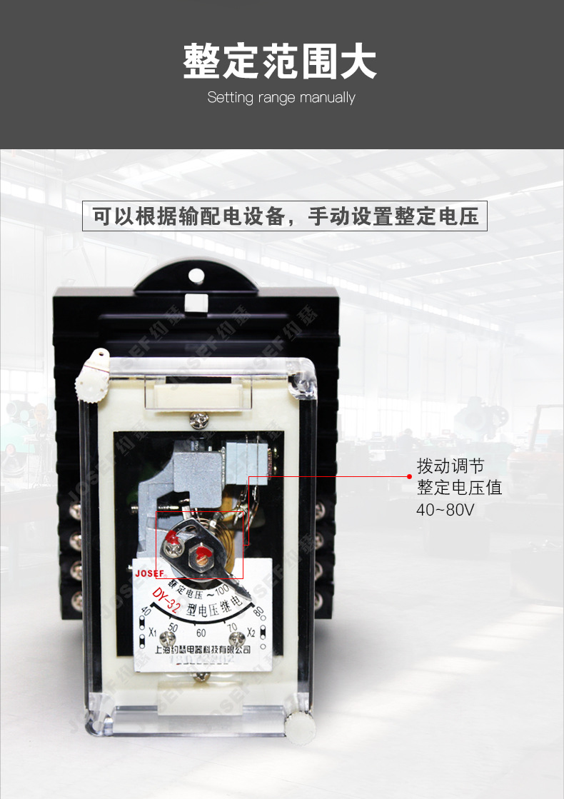 JOSEF约瑟 低电压继电器 DY-110 安装方式板前接线, 工作电压AC220V
