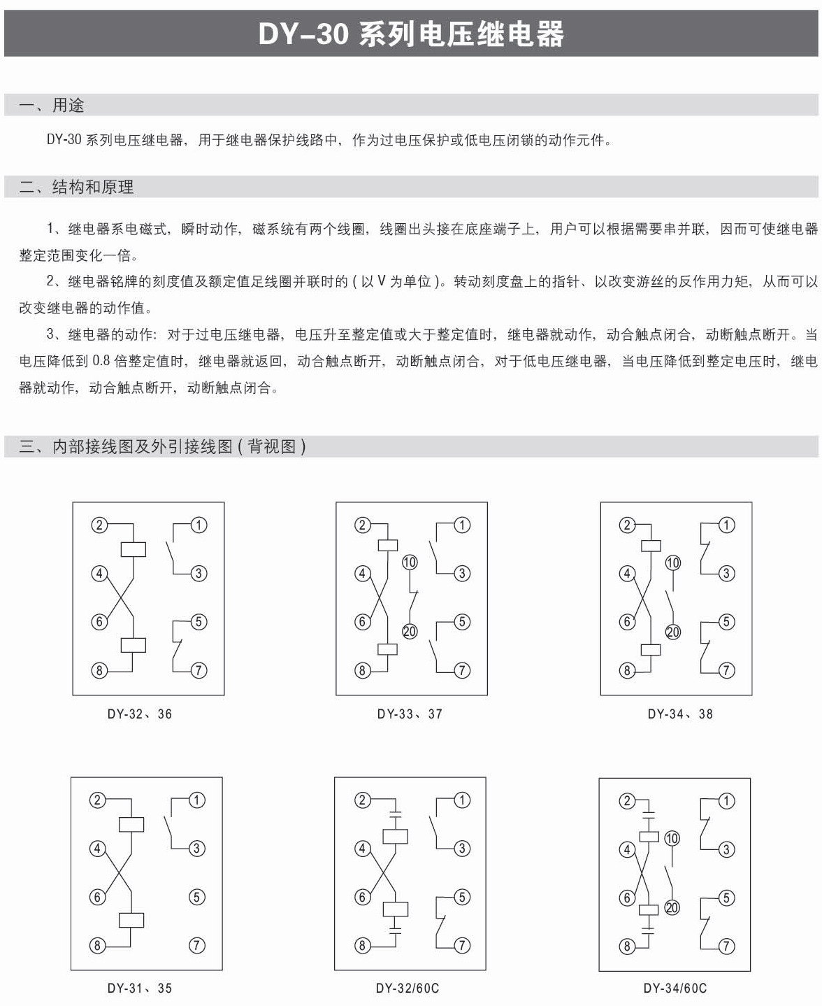 DY-32 / 60C、DY-34 / 60C规格为长期热稳定(具有内附串联电容)电压继电器。