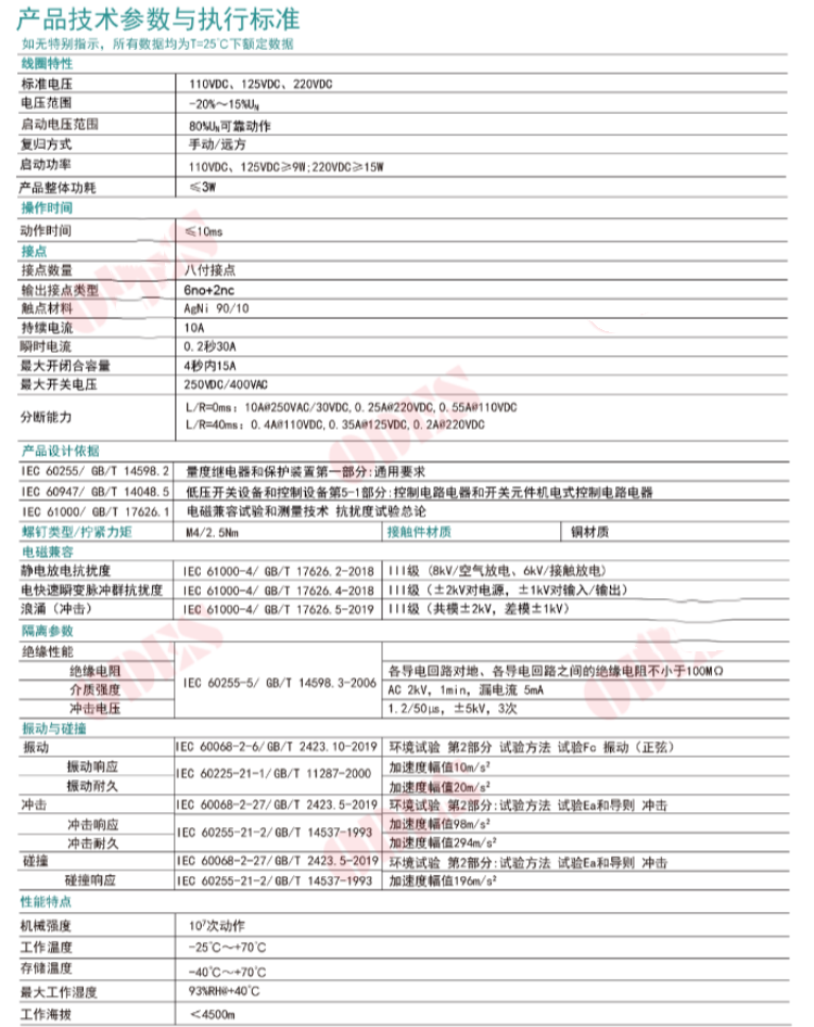 高可靠性:该系列继电器采用高品质材料和先进工艺制造,以确保在各种恶劣环境下都能稳定、可靠地工作。其内部电路和机械结构都经过严格测试和验证,以满足电力系统的严格要求。