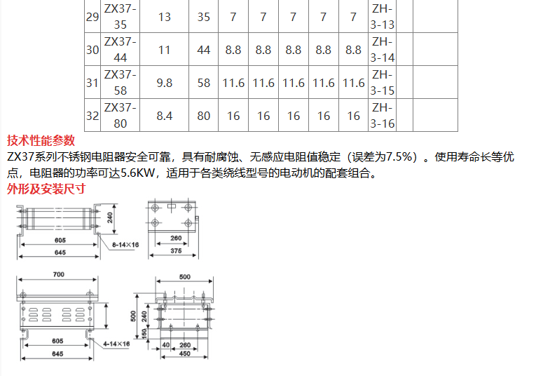 ZX37-16不锈钢电阻器ZX37-8不锈钢电阻器ZX37-5.6不锈钢电阻器ZX37-4.2不锈钢电阻器