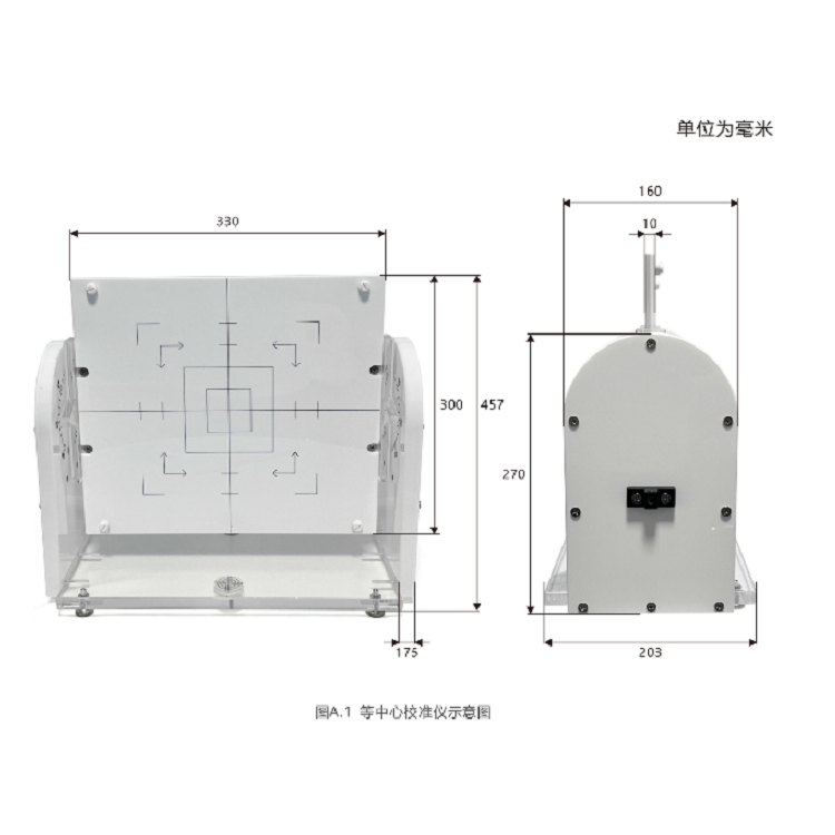 1、外形尺寸:203x457x330mm,允差±20mm,刻有面板尺寸、边缘和中心的线条定义线;
