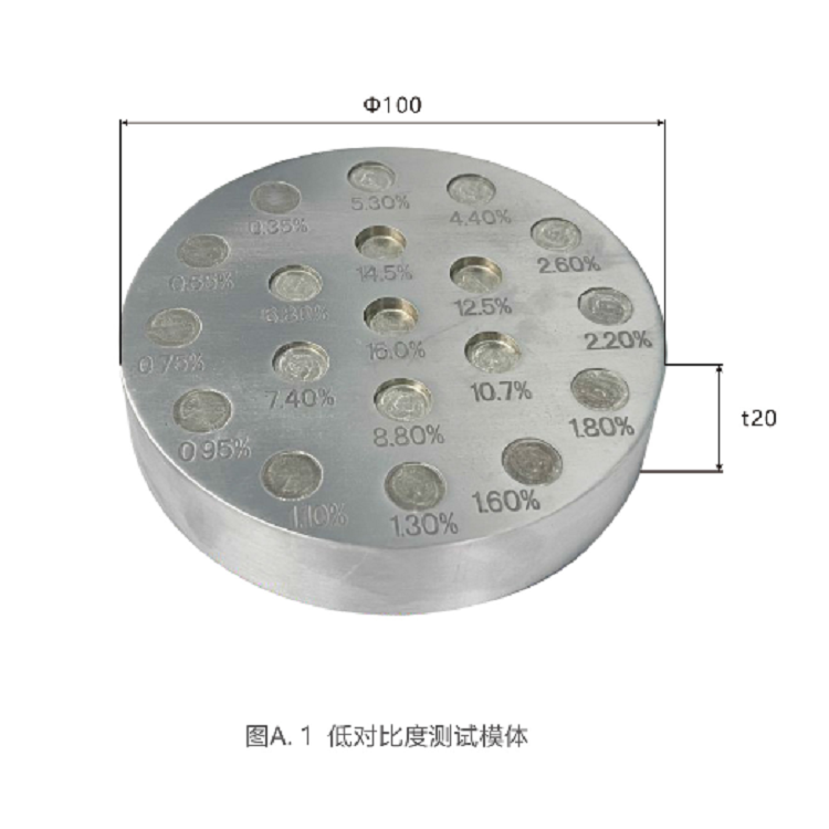 低对比度测试卡,测试卡由 20mm 厚的铝板制成。