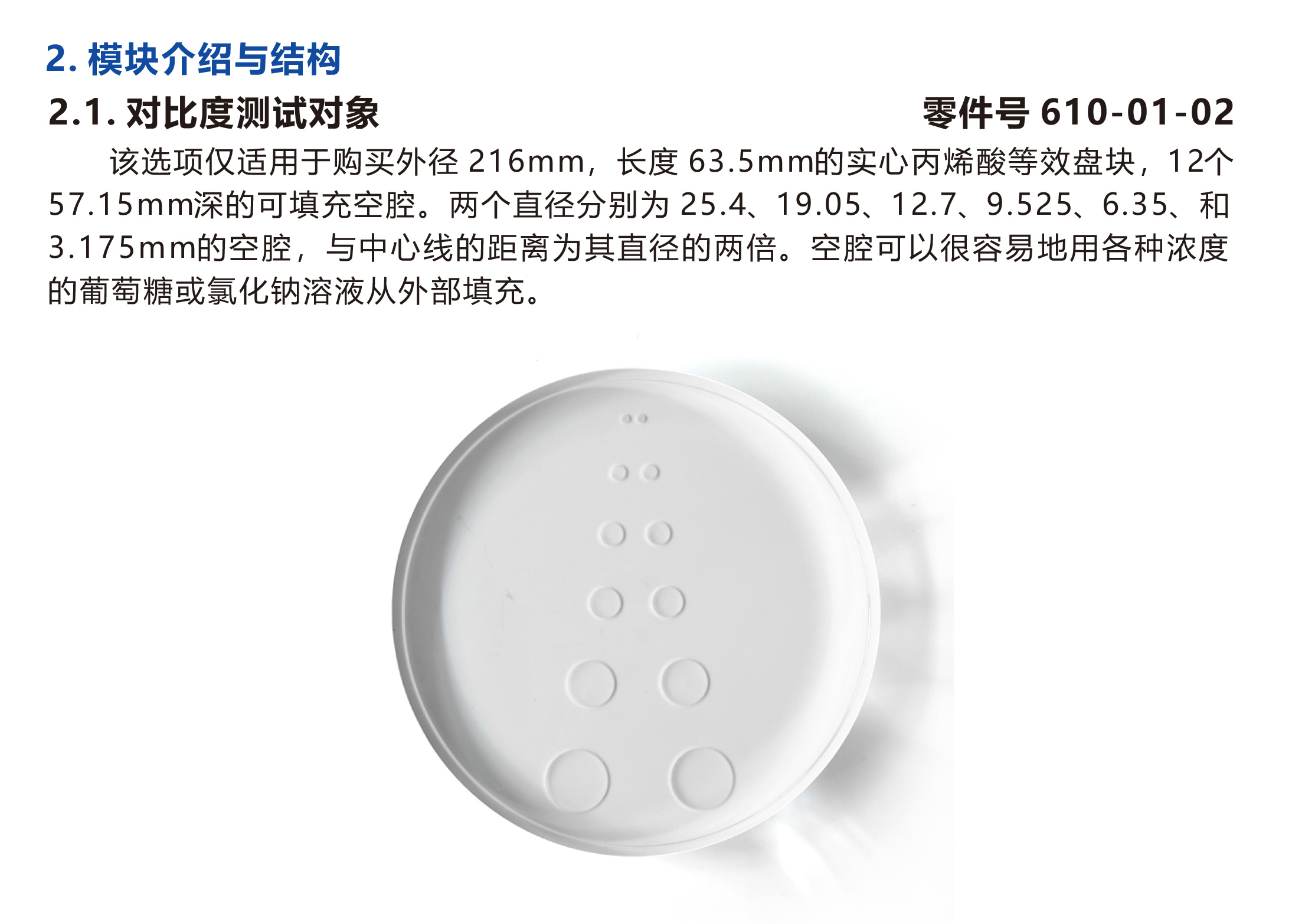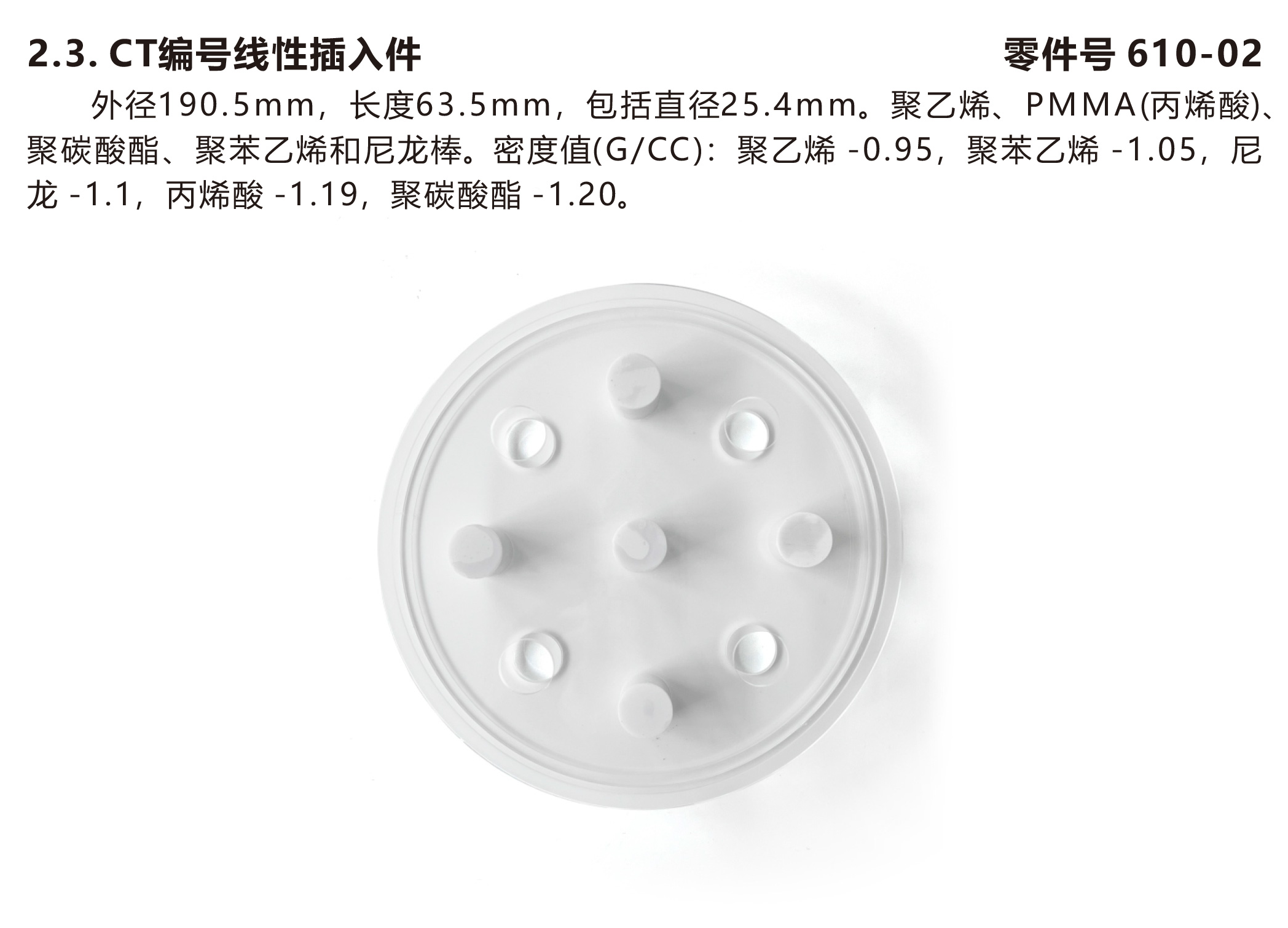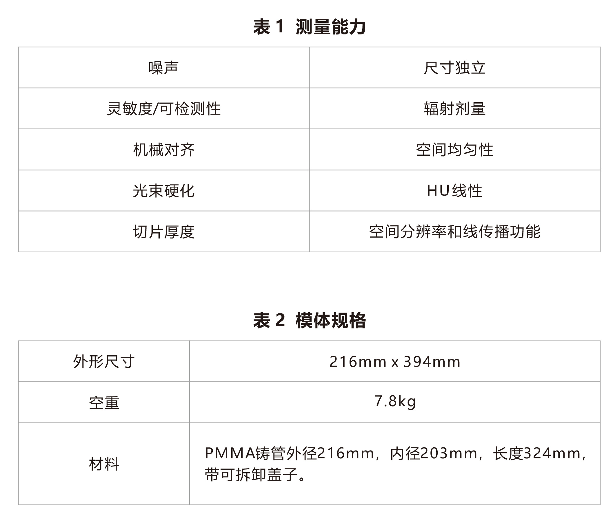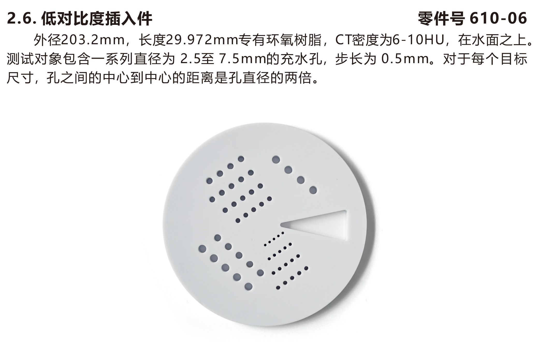 AAPM CT性能模体为用户提供了一个单一的测试对象,测量10个不同的 CT性能参数。