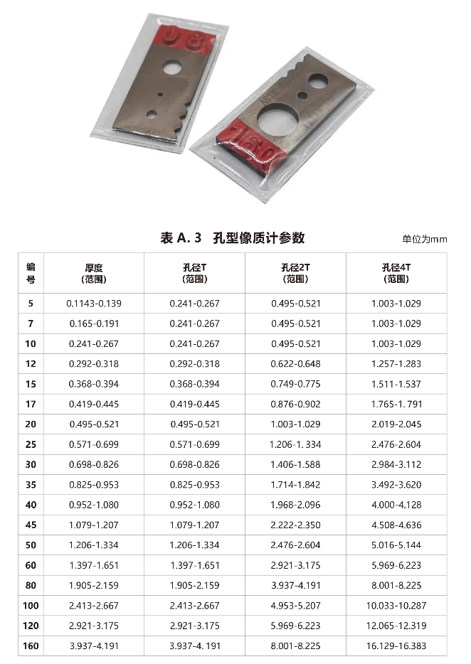 另可提供符合ASTME1742孔型像质计及相应的垫块。