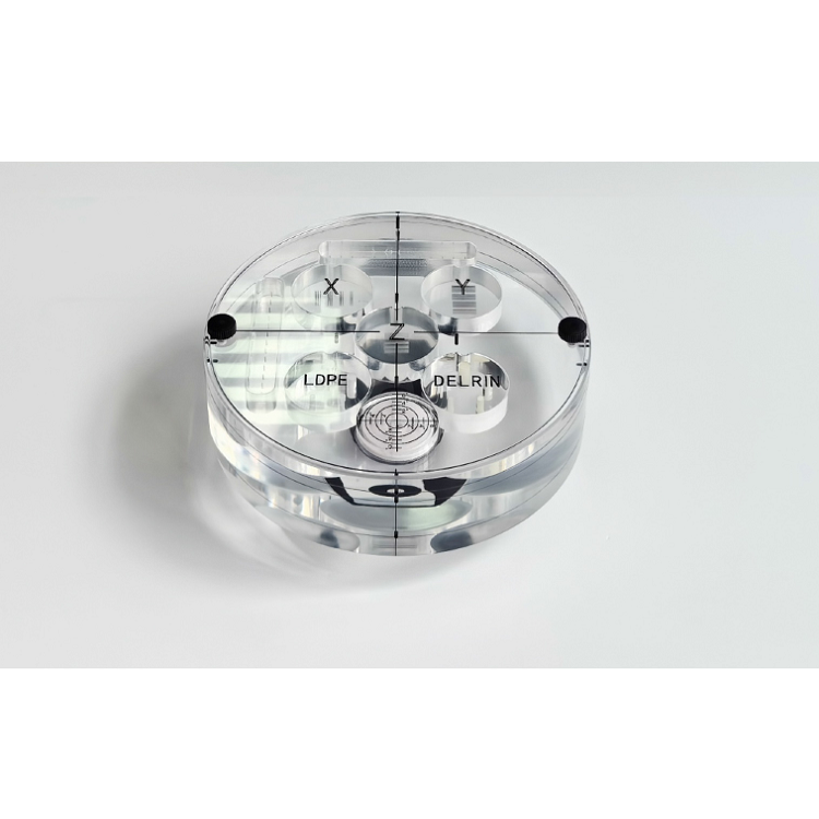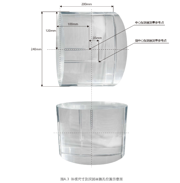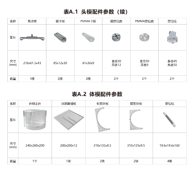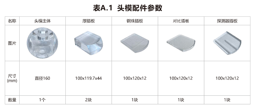 头模由球体结构件、胶片插板、探测器插板等构成。模体可使用固体水、聚或有机玻璃制成,推荐使用固体水材料。