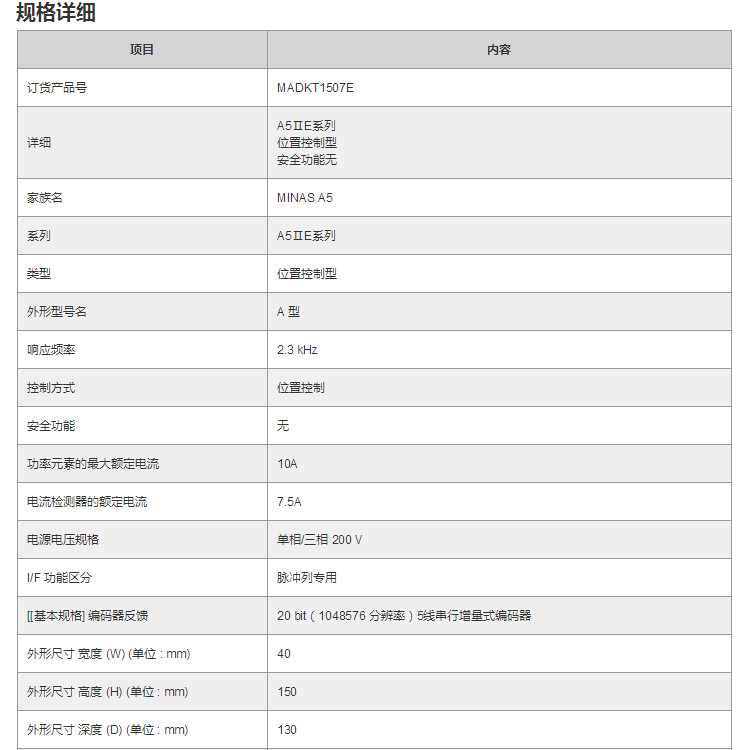 Panasonic 松下伺服系列 常用型号: