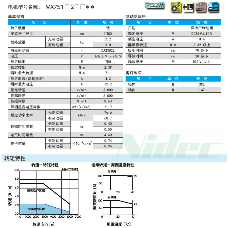 Nidec 750W伺服电机 MZ751N2LN07 / 日本电产 750W伺服放大器 DB63811、DB63841、DA23823、DA23824