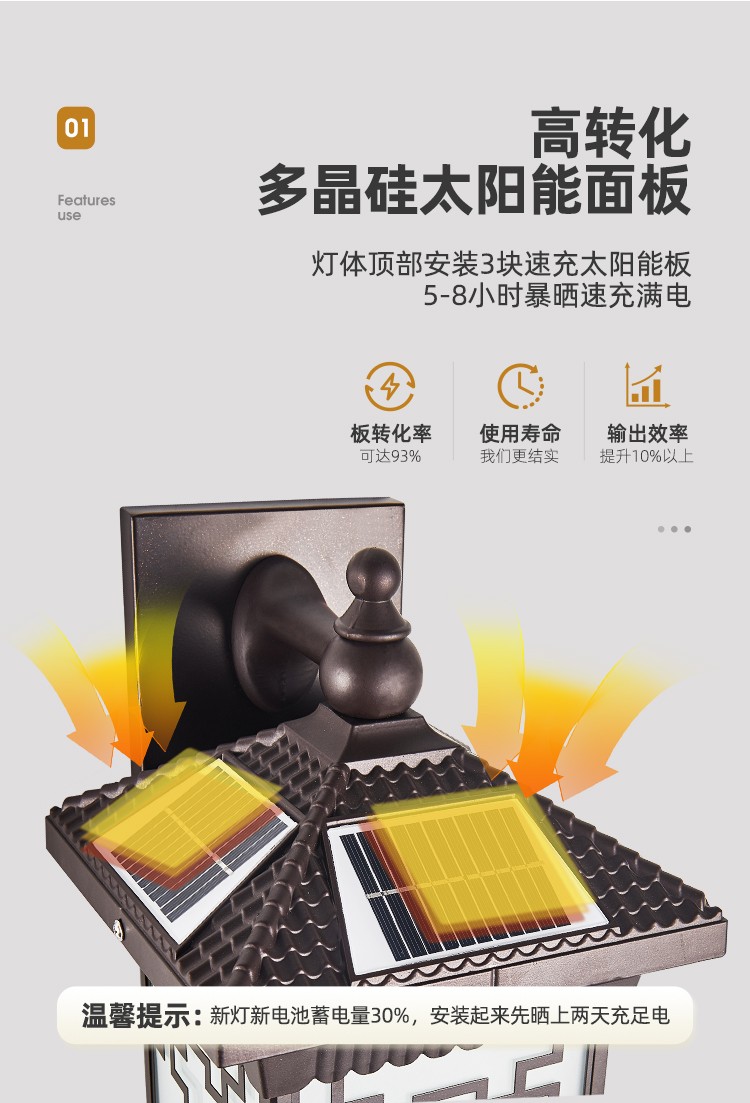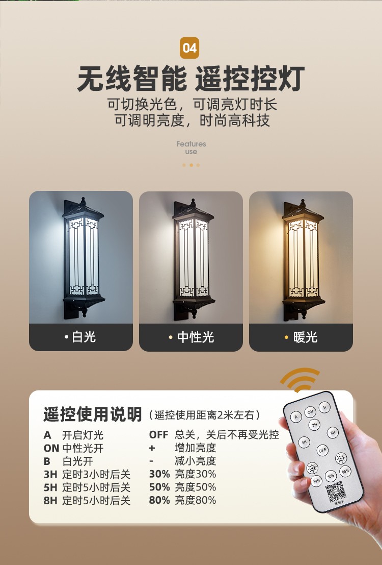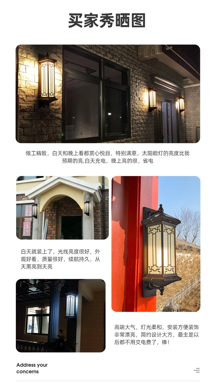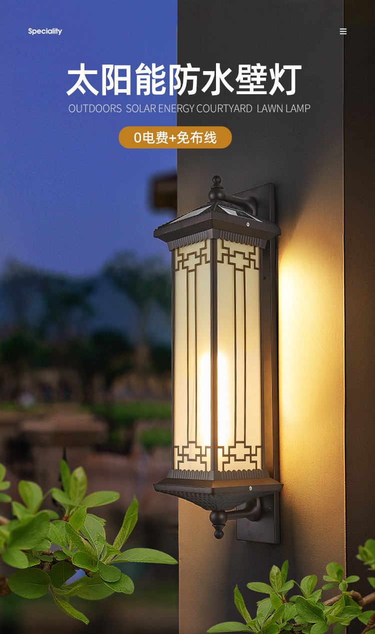太阳能防水壁灯 吉祥壁灯系列 0布线 多尺寸 铝质外壳