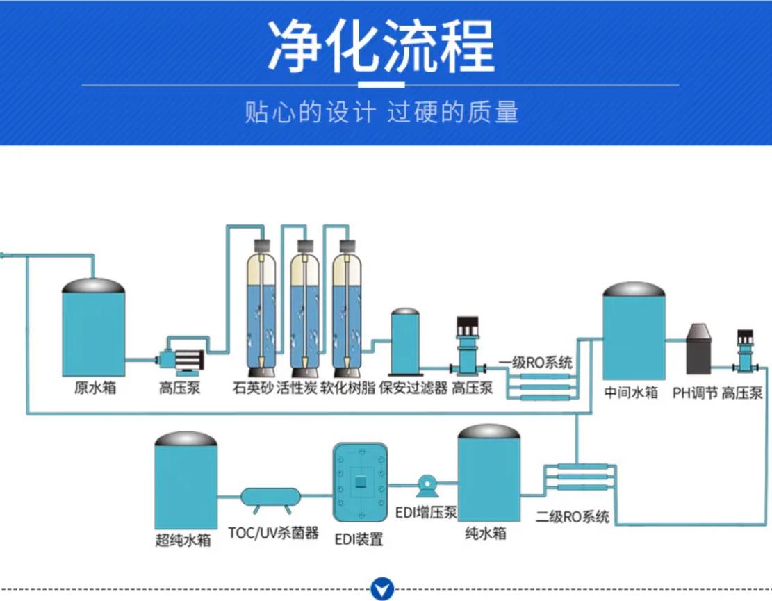 超纯水装置是用于制备超纯水的设备。超纯水是指通过一系列的物理和化学处理,去除水中的杂质和离子,使其达到高纯度的水。超纯水装置通常包括多个步骤,如预处理、反渗透、电离交换和电解除气等,以确保水的质量符合特定的要求。超纯水装置广泛应用于实验室、、电子、制药、化学等领域。