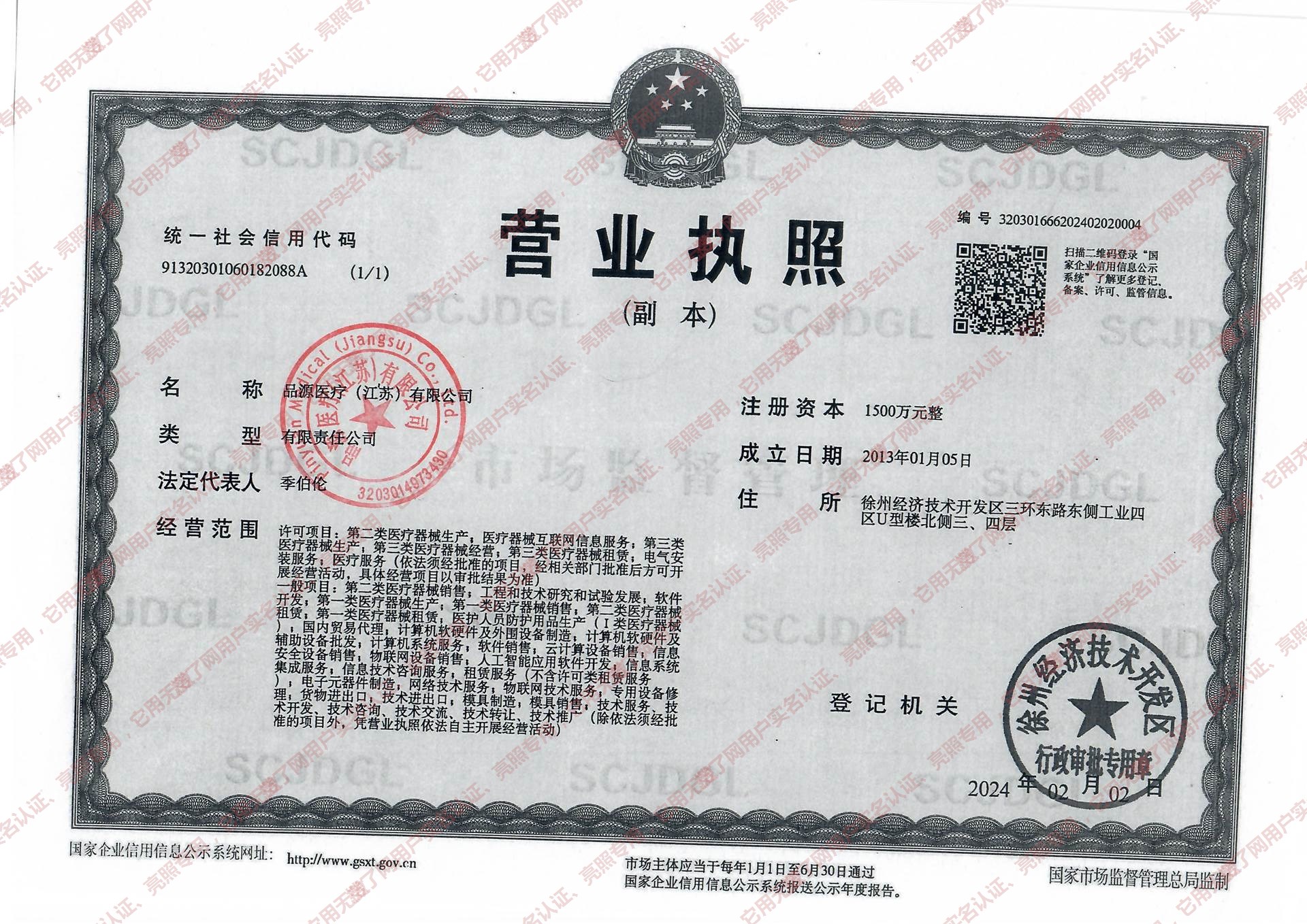 地址:江苏徐州市鼓楼区江苏省徐州经济技术开发区三环东路26号金桥智谷U型楼北楼三楼(品源医疗)