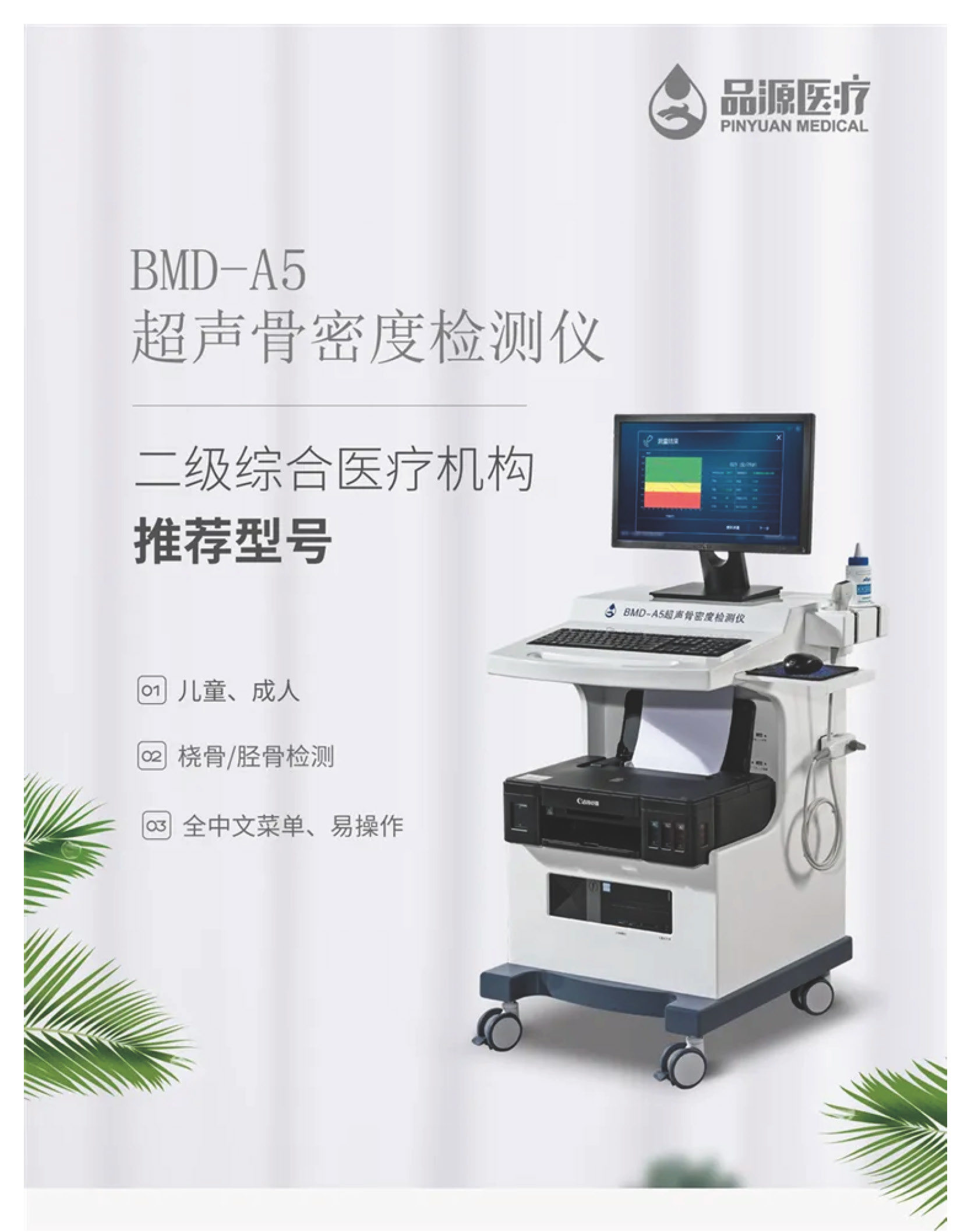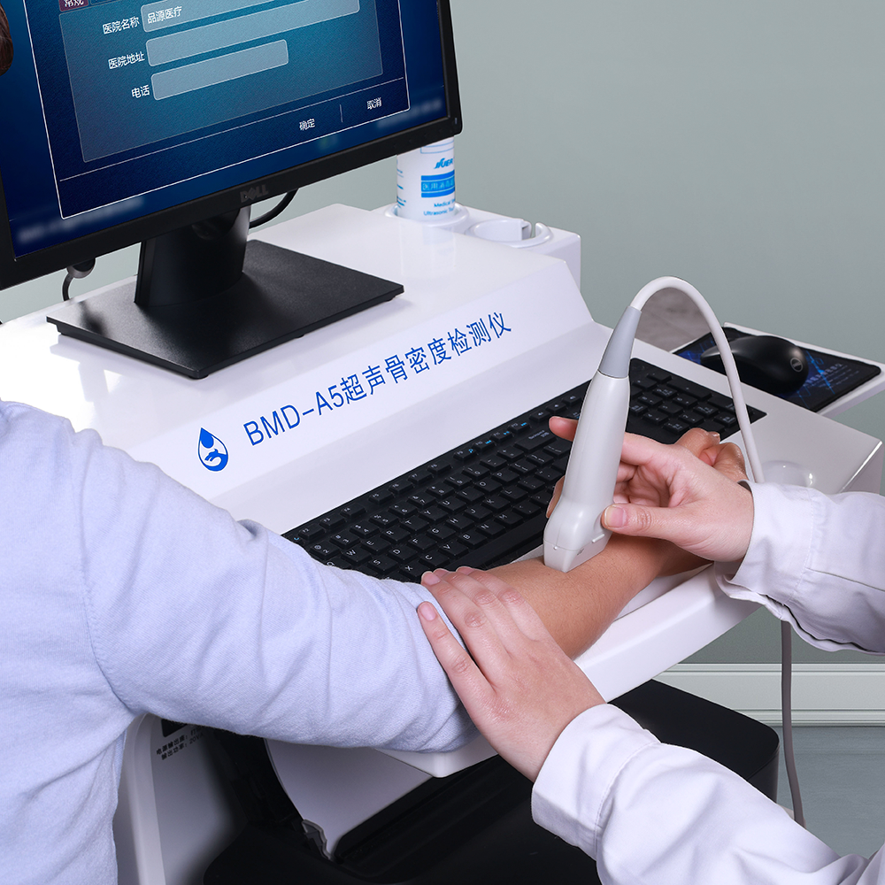 下面为大家介绍一下其中的一款产品,超声波骨密度检测仪BMD-A5,这款仪器外形推车式,造型美观大气,性价比高,尤其适合二级以上大中型综合性医疗机构及专科医疗机构等使用。