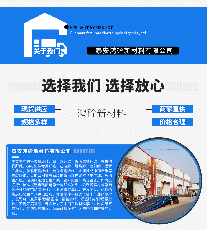 聚丙烯纤维,聚丙烯短纤维,聚丙烯抗裂纤维,聚丙烯腈纤维,聚丙烯网状纤维,聚丙烯纤维网,仿钢纤维,塑钢纤维,聚丙烯粗纤维,铰链纤维,聚丙烯铰链纤维,交联纤维,聚丙烯绞联纤维,绞联纤维,聚丙烯交联纤维,PP纤维,防裂纤维,束状纤维,束状单丝纤维,增韧纤维,耐拉纤维,PP网状纤维,PVA粗纤维,PVA单丝纤维,聚乙烯醇纤维,聚乙烯醇粗纤维,玄武岩纤维,聚酯纤维,PET纤维,耐高温纤维,沥青路面纤维,纤维素纤维,木质素纤维,石膏线纤维,开刀丝钢纤维,端钩钢纤维,镀铜钢纤维,玻璃纤维,无碱玻璃纤维,塑料玻璃纤维,PVC纤维,热塑玻璃纤维,短切玻璃纤维,短切毡,表面毡,复合毡,缝边毡,方格布抗裂纤维,抗拉纤维,混凝土纤维,沥青纤维,工程纤维,砂浆纤维,玻璃纤维纱,沥青同步封层车纤维,同步封层车纤维纱,桥面防水纤维,桥面玻璃纤维,桥面封层玻璃纤维,缠绕纱,喷射纱