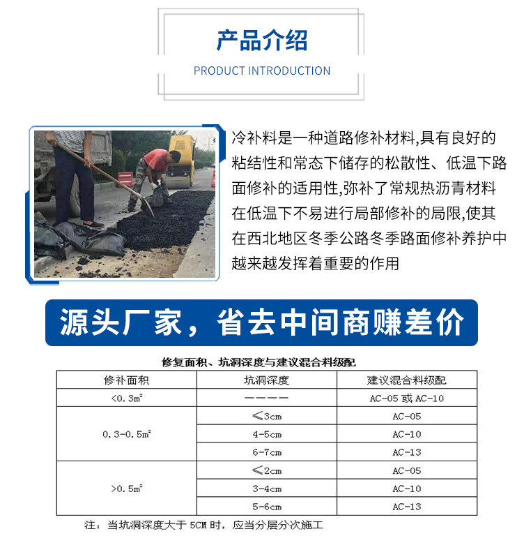 坑槽修补料 袋装沥青料 电力市政 路政用冷补料 施工便捷 即时通车