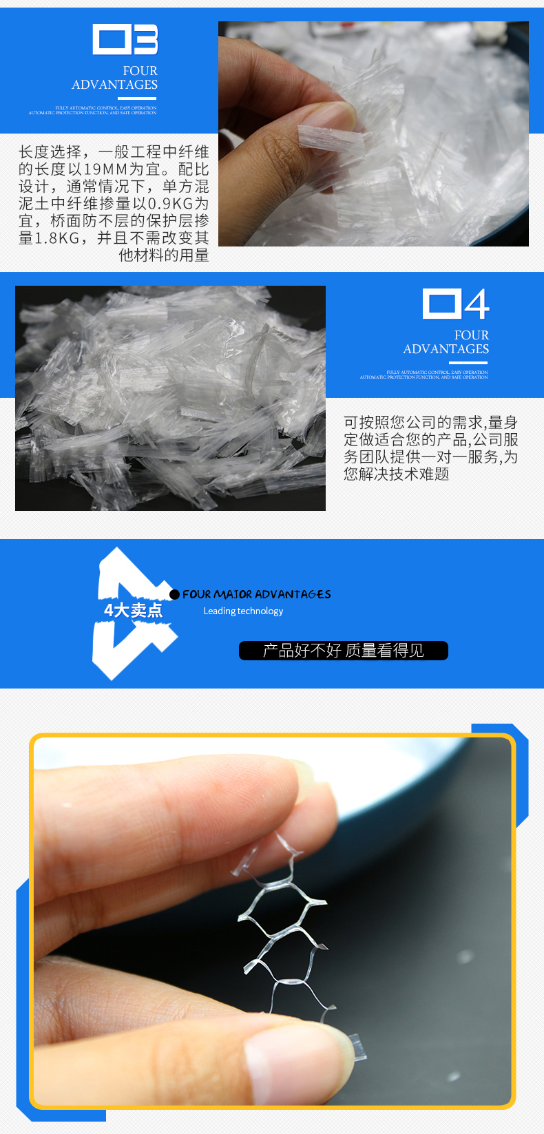 聚丙烯纤维,聚丙烯短纤维,聚丙烯抗裂纤维,聚丙烯腈纤维,聚丙烯网状纤维,聚丙烯纤维网,仿钢纤维,塑钢纤维,聚丙烯粗纤维,铰链纤维,聚丙烯铰链纤维,交联纤维,聚丙烯绞联纤维,绞联纤维,聚丙烯交联纤维,PP纤维,防裂纤维,束状纤维,束状单丝纤维,增韧纤维,耐拉纤维,PP网状纤维,PVA粗纤维,PVA单丝纤维,聚乙烯醇纤维,聚乙烯醇粗纤维,玄武岩纤维,聚酯纤维,PET纤维,耐高温纤维,沥青路面纤维,纤维素纤维,木质素纤维,石膏线纤维,开刀丝钢纤维,端钩钢纤维,镀铜钢纤维,玻璃纤维,无碱玻璃纤维,塑料玻璃纤维,PVC纤维,热塑玻璃纤维,短切玻璃纤维,短切毡,表面毡,复合毡,缝边毡,方格布抗裂纤维,抗拉纤维,混凝土纤维,沥青纤维,工程纤维,砂浆纤维,玻璃纤维纱,沥青同步封层车纤维,同步封层车纤维纱,桥面防水纤维,桥面玻璃纤维,桥面封层玻璃纤维,缠绕纱,喷射纱