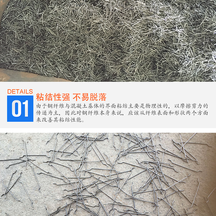 钢纤维混凝土具有与普通混凝土一样的搅拌、运转和施工性能,纤维在混凝土中不会结球,分布均匀,可在商品混凝土搅拌站进行生产并能用于泵送施工。钢纤维混凝土的早期坍落度损失较大,30分钟损失32%,2小时损失42%。钢纤维混凝土的实际工作性优于相同的坍落度的普通混凝土。钢纤维混凝土具有良好的材料性能,与普通混凝土相比,其抗压强度提高2~20%;弯拉强度提高20~50%;劈裂抗拉强度提高20~40%;耐磨性能提高40%左右。钢纤维粗糙而洁净的表面,能与混凝土中的水泥浆体牢固的结合,这是端钩钢纤维提高混凝土各种性能的根本原因。
