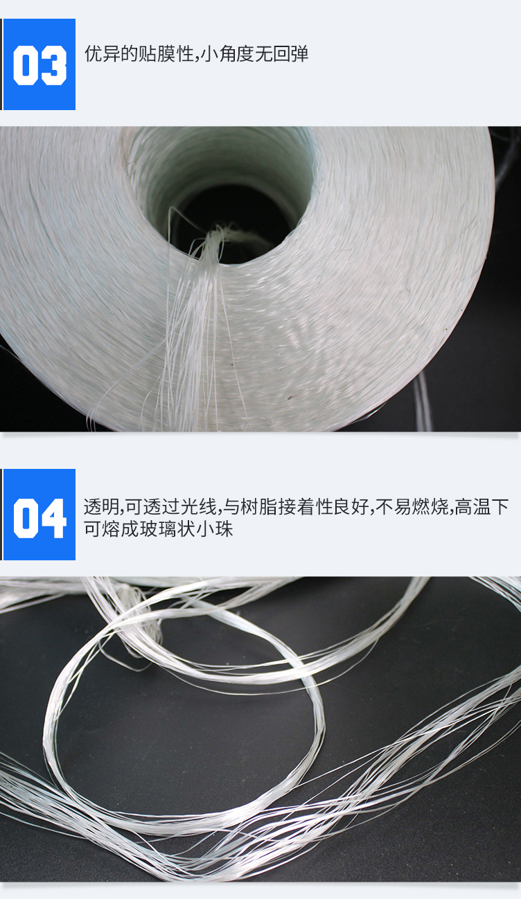 原料及其应用:玻璃纤维比有机纤维耐温高,不燃,抗腐,隔热、隔音性好,抗拉强度高,电绝缘性好。但性脆,耐磨性较差。用来制造增强塑料或增强橡胶,作为补强材玻璃纤维具有以下之特点,这些特点使玻璃纤维之使用远较其他种类纤维来得广泛。