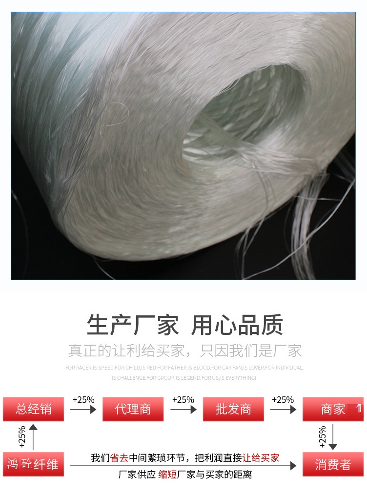 拉挤用无捻粗纱 拉挤用于制造断面一致的各种型材,其特点是玻纤含量高,单向强度大。拉挤用无捻粗纱可以是多股原丝并合的也可以是直接的无捻粗纱,其线密度范围为1100号到4400号。各种性能要求与缠绕无捻粗纱大体相同。