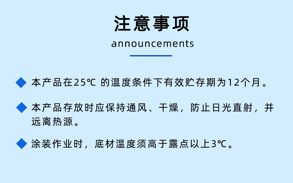 推荐采用空气喷涂或无气喷涂方式进行大面积施工。请注意,辊涂不适用于本产品,而刷涂仅建议用于小范围的局部修补。