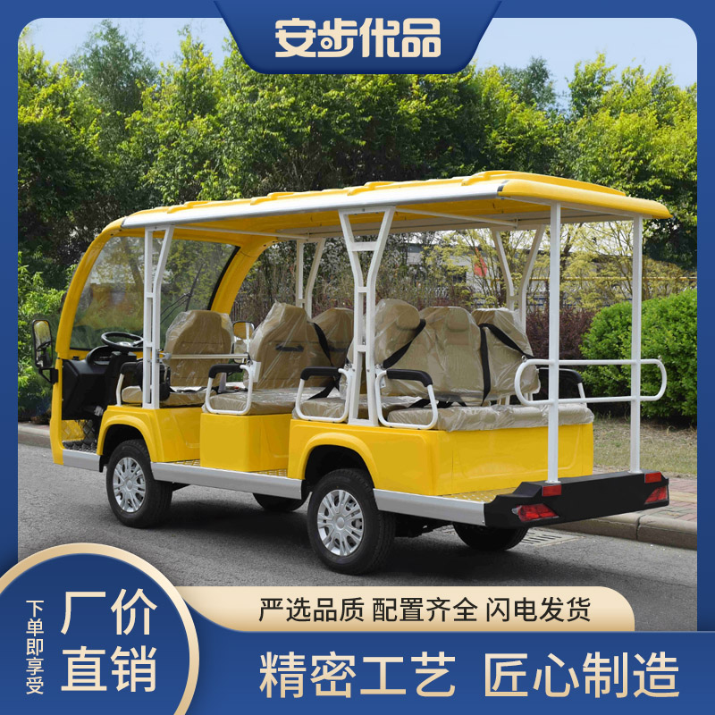 电动游览车多样化的车型和座位数量适用于不同的需求,可以容纳不同数量的乘客。游览车通常配备舒适的座椅、车顶和侧遮阳篷,以提供乘客舒适的游览体验。