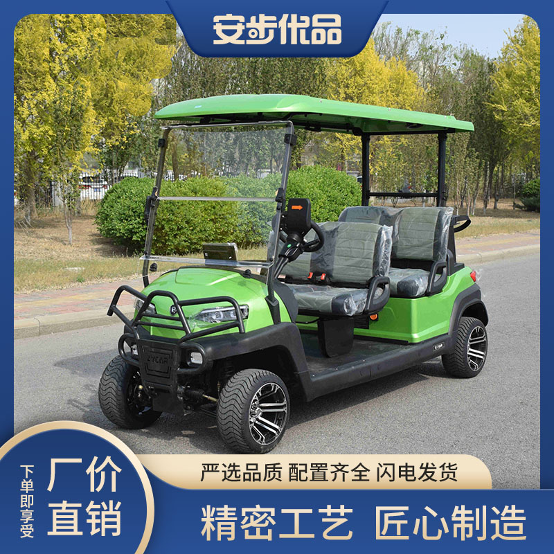 高尔夫球车是一种用于高尔夫运动的交通工具,也称为高尔夫球车或高尔夫电瓶车。它通常由一个电动马达驱动,并装有蓄电池供电。高尔夫球车通常为双人乘坐(有些还可以容纳更多人),配有高尔夫球杆储存架和载物箱,方便高尔夫球手在球场上移动。它可以在球场上快速、轻松地穿梭,省力又,让高尔夫球手可以集中精力击球。高尔夫球车在现代高尔夫运动中已经成为一种常见的工具。