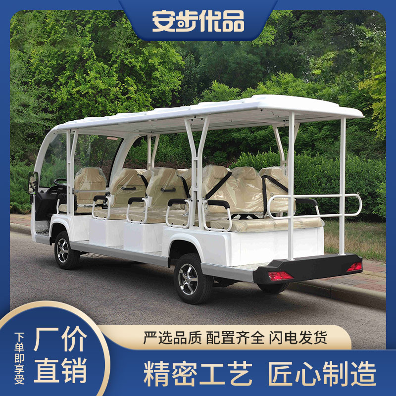 电动观光车通常用于旅游景点、城市观光和公园等场所,它们提供方便、环保和安全的交通方式,同时也为乘客提供了舒适的观光体验。