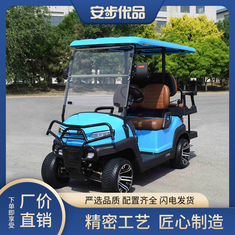 高尔夫球车是一种用于高尔夫运动的交通工具,也称为高尔夫球车或高尔夫电瓶车。它通常由一个电动马达驱动,并装有蓄电池供电。高尔夫球车通常为双人乘坐(有些还可以容纳更多人),配有高尔夫球杆储存架和载物箱,方便高尔夫球手在球场上移动。它可以在球场上快速、轻松地穿梭,省力又,让高尔夫球手可以集中精力击球。高尔夫球车在现代高尔夫运动中已经成为一种常见的工具。
