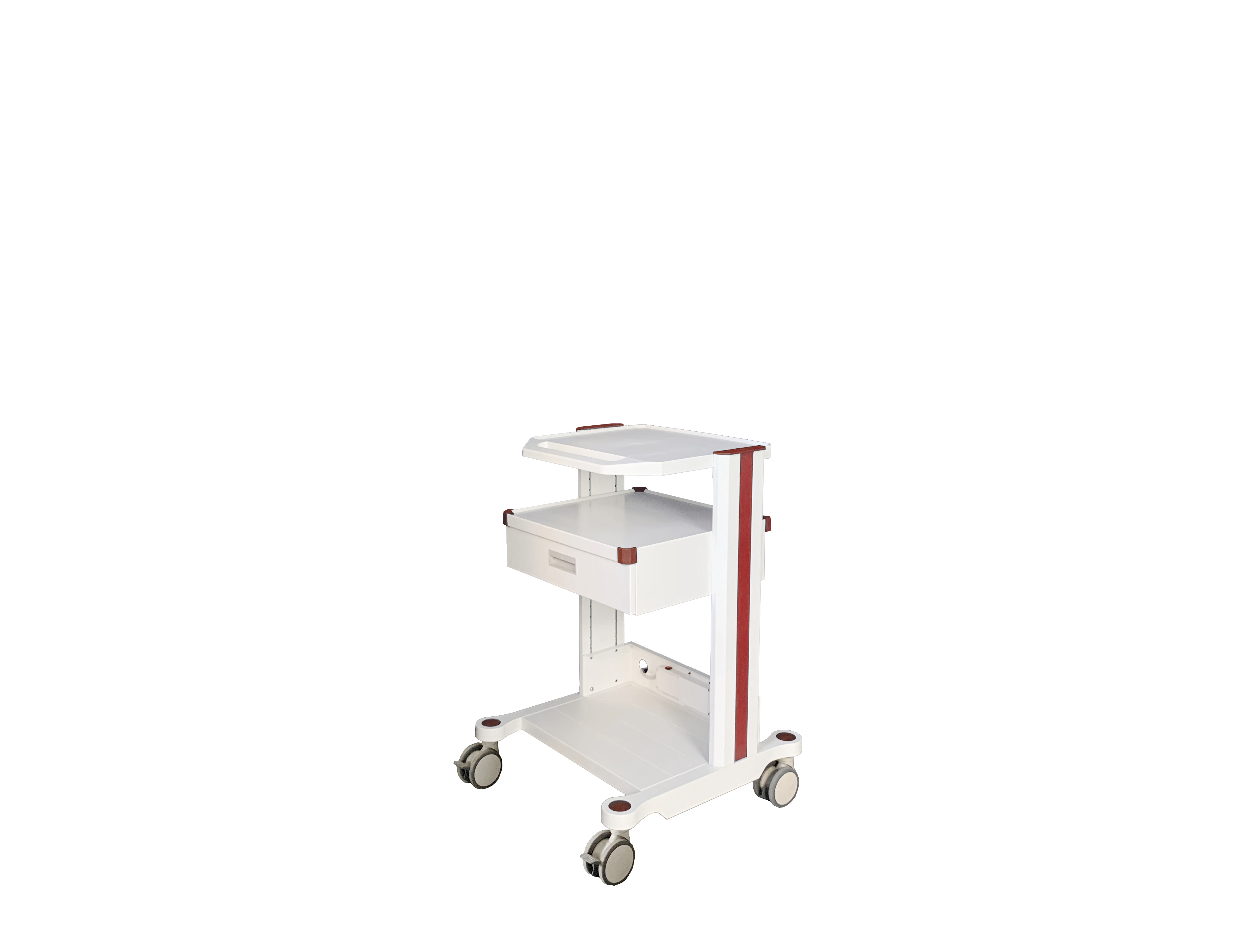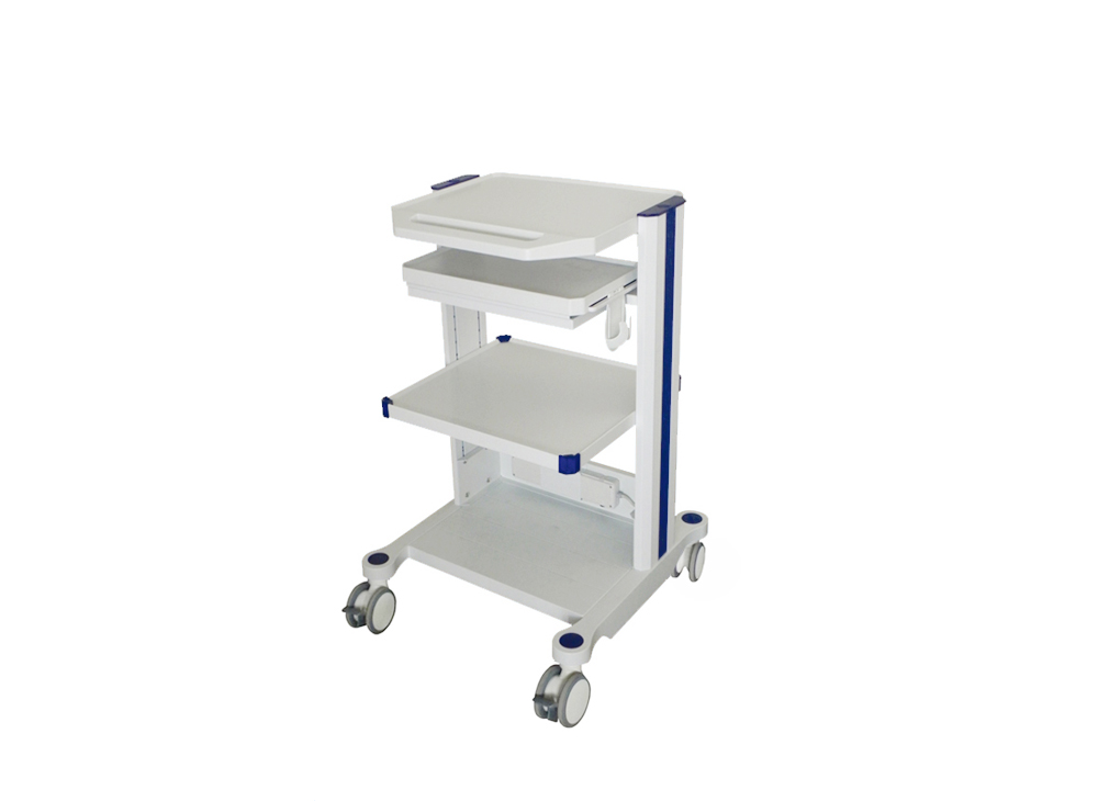 此款推车是我公司自主研发的多功能工作站推车。首先可以应用在医疗领域,用作医疗工作站推车,比如肺功能仪器、眼科设备、口扫设备、脑电设备、心电设备、康复仪器等;也可以应用在教育办公领域,用作图文工作站推车或教学工作站推车;还可以应用在工业领域,作为工控机、交换机、工业主机的集成工作站推车。推车高度可以调节定制,模块化的设计可以根据不同设备的不同需求定制尺寸; 人体工程学的设计原理,让操作者更舒适,使用更顺手,更能提高工作效率;推车采用冷轧钢板、ABS工程塑料及高强度铝合金型材组合而成。静音脚轮轻便耐用,可调节的隔板、搭配半隐藏式的键盘鼠标架,各种显示器支架随意搭配,实现真正的一车多用,满足不同需求,通用性强。