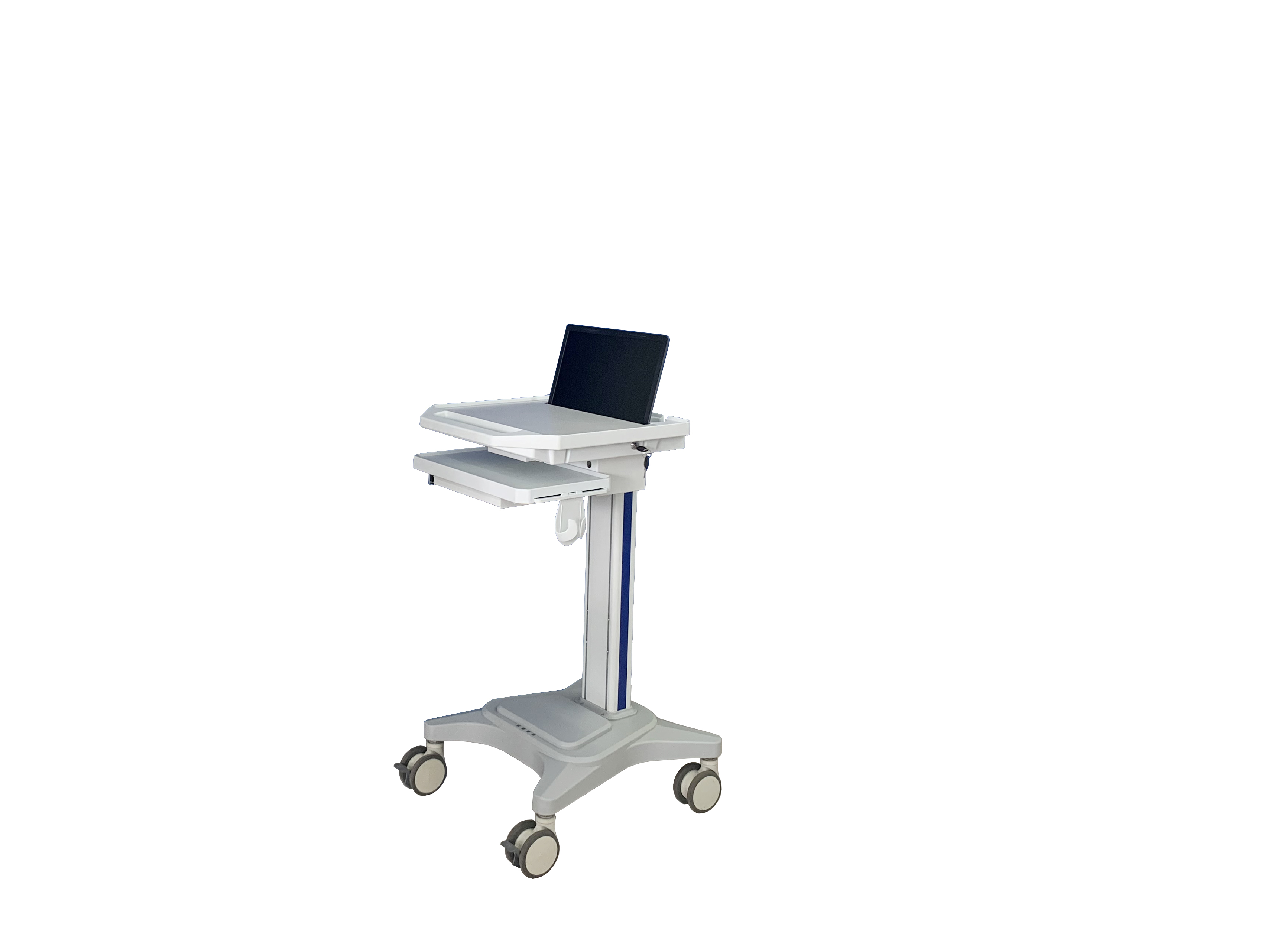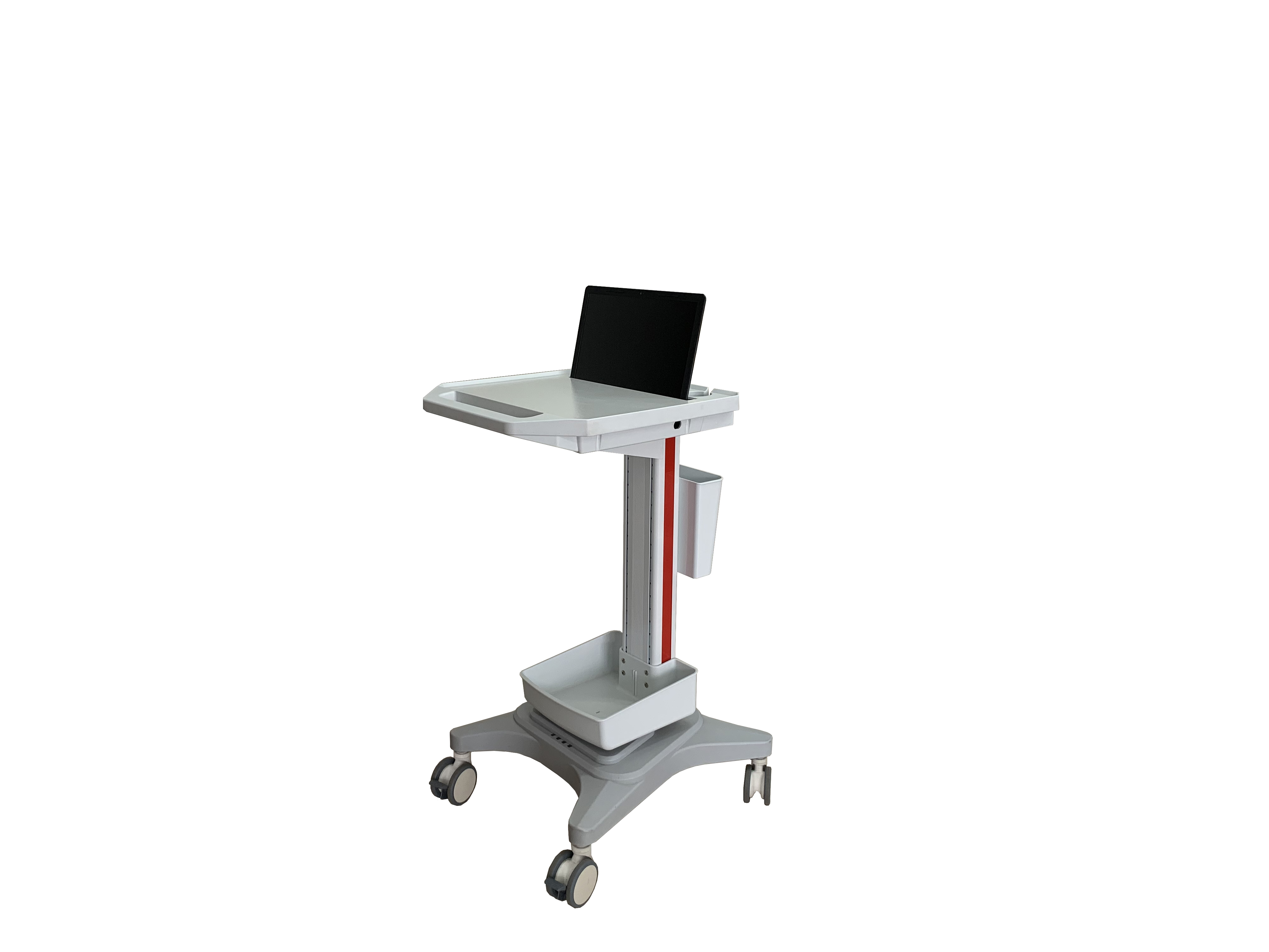 此款推车是我公司自主研发的多功能电脑推车,可以扩展为笔记本推车,一体机推车,电脑主机推车,电脑打印机推车,平板电脑推车等;此款推车的出现很好的解决电脑设备和附属配件集成和移动的问题,从而达到灵活办公,美观整齐的效果;推车内可以加装锂电池为电脑设备供电,可以加装显示器挂臂实现360度旋转悬停,还可以加装双屏或者三屏支架实现多屏互联;高品质静音脚轮,万向刹车,多方向移动无障碍;储物篮筐,小抽屉,打印机托盘,杂物盒等方便放置随机配件;推车采用冷轧钢板、ABS工程塑料及高强度铝合金型材组装而成。外形设计简洁大气、结构稳定材质耐用、更适合人体功能学所需。可以广泛应用在医疗,工业,教育,互联网等各种领域,通用性强。